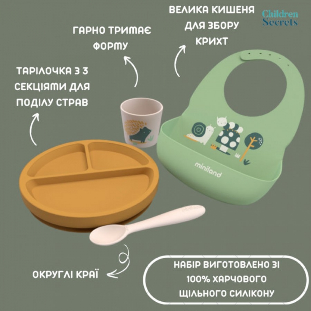 Набір силіконового дитячого посуду Miniland Garden, арт. MNL-89638