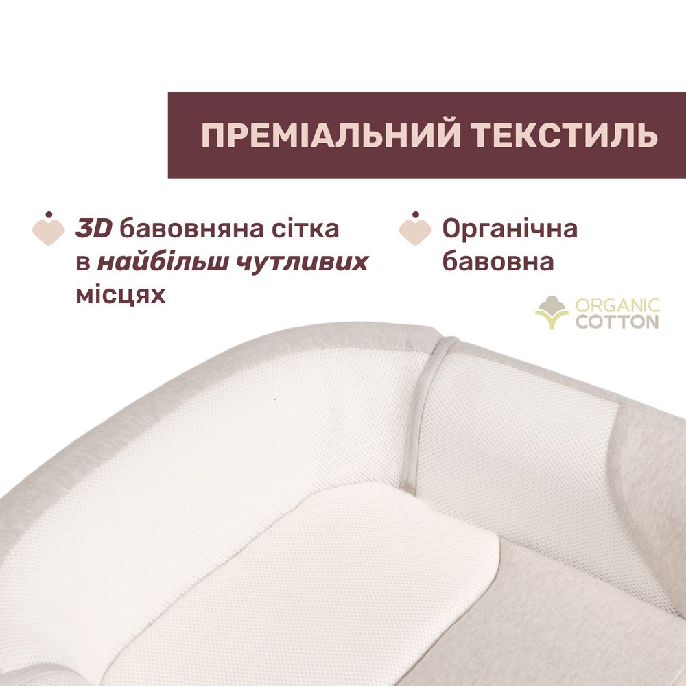 | Матеріал | натуральна бавовняна тканина з додаванням 3D-сітки для вентиляції |